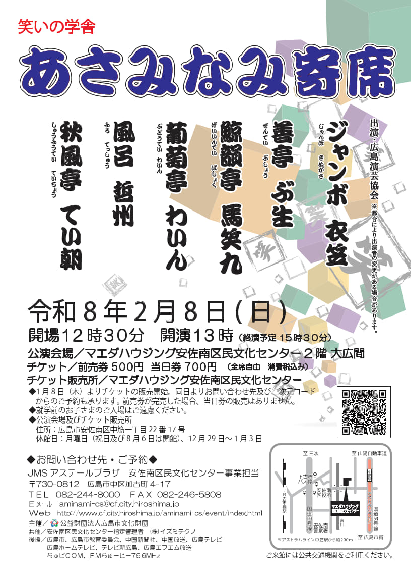 【お問い合わせ・ご予約】JMSアステールプラザ 安佐南区民文化センター事業担当 TEL. 082-244-8000