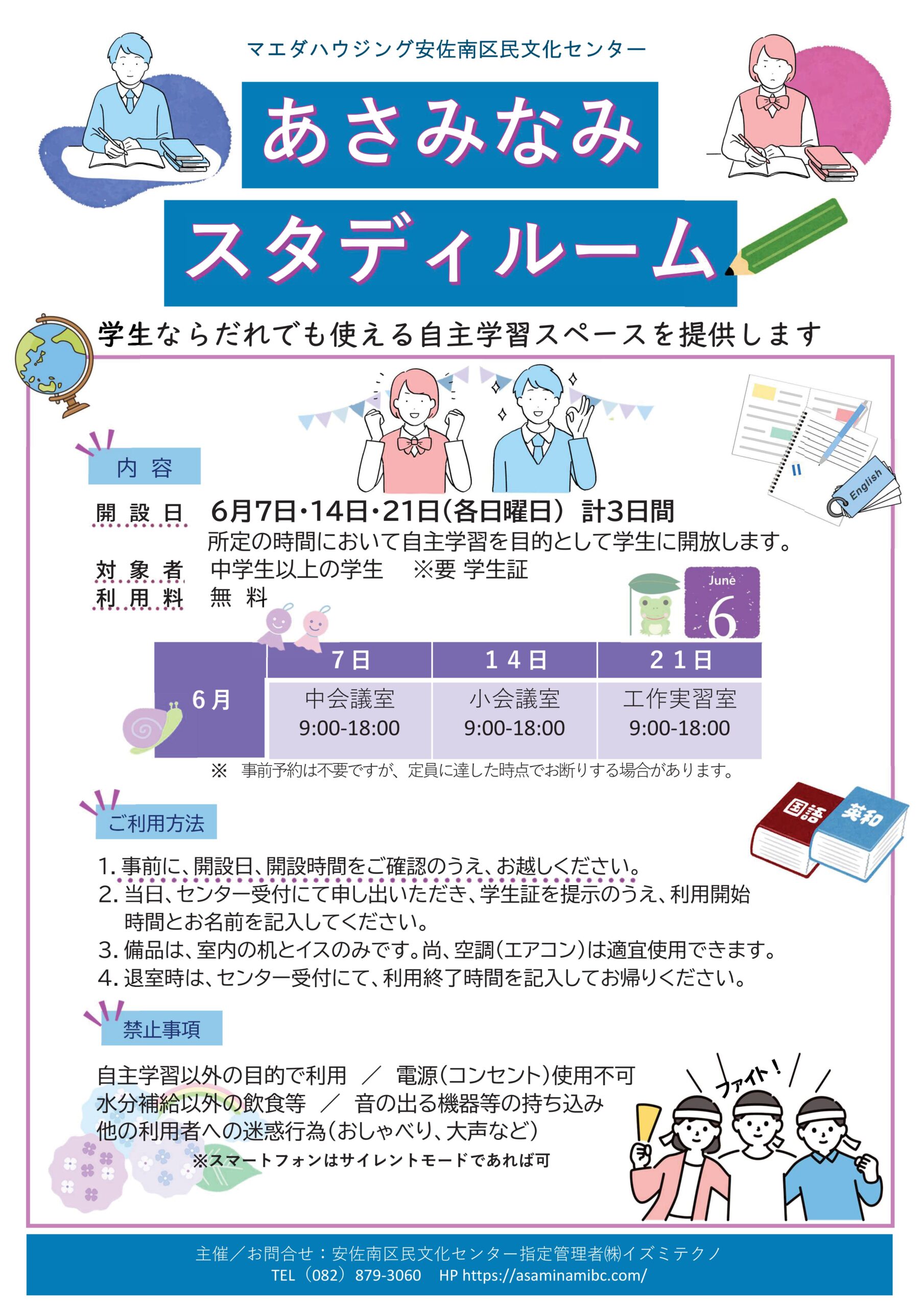 中学生以上の学生さんなら誰でも使える自主学習スペースを5月の毎週日曜日に開設します。 ※要学生証