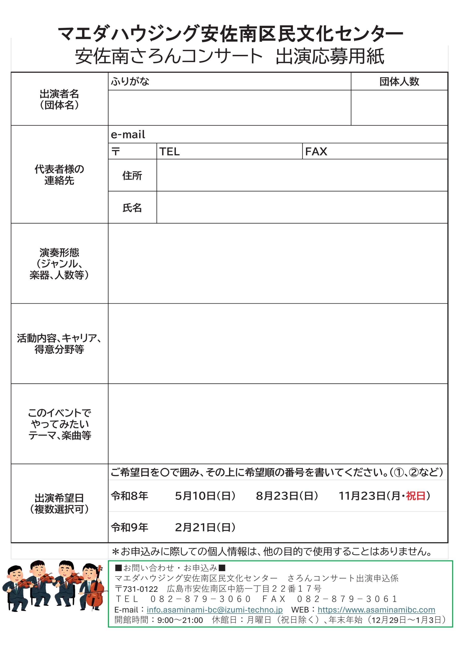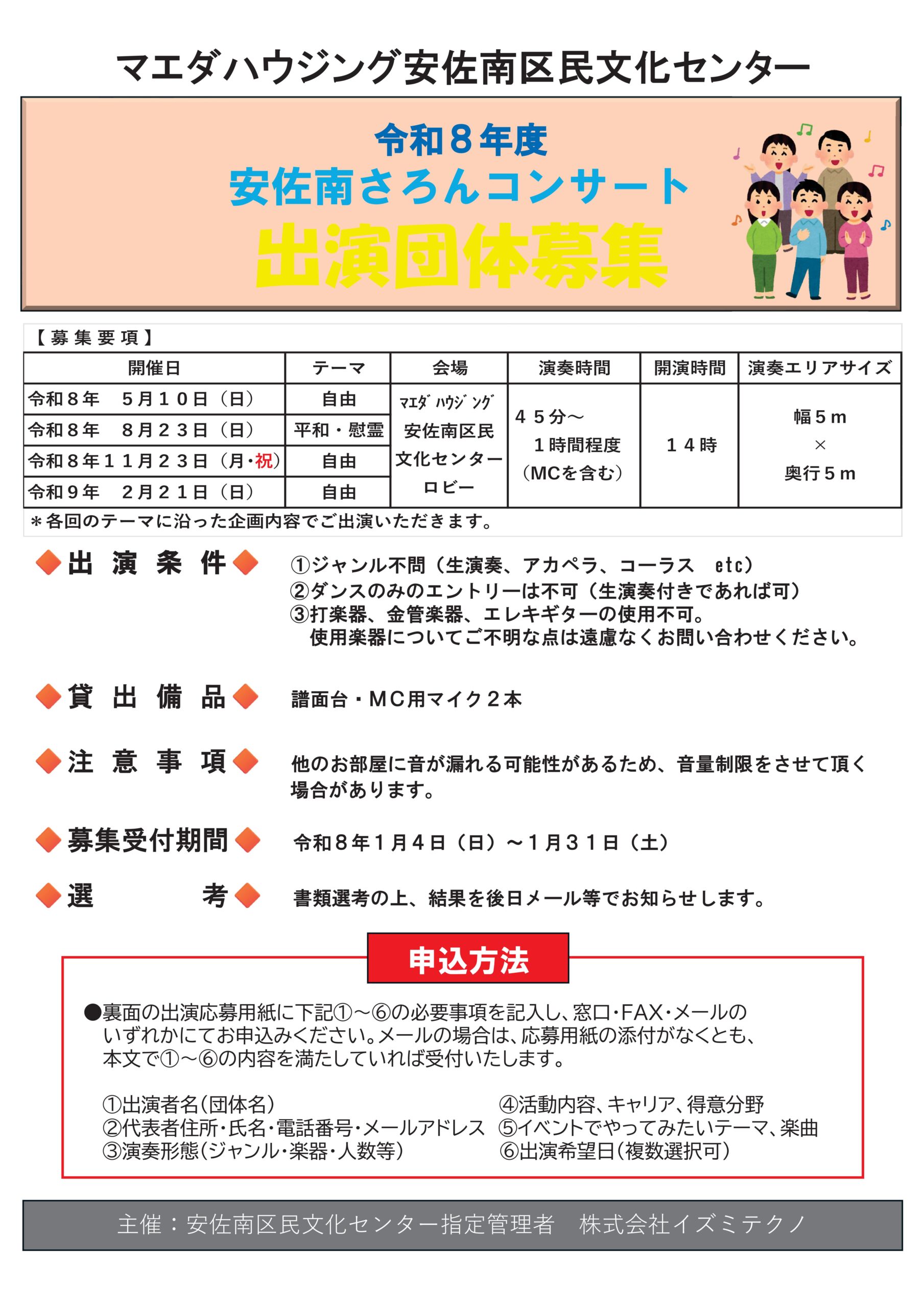 令和8年度安佐南さろんコンサートに出演していただける団体さまを募集します。